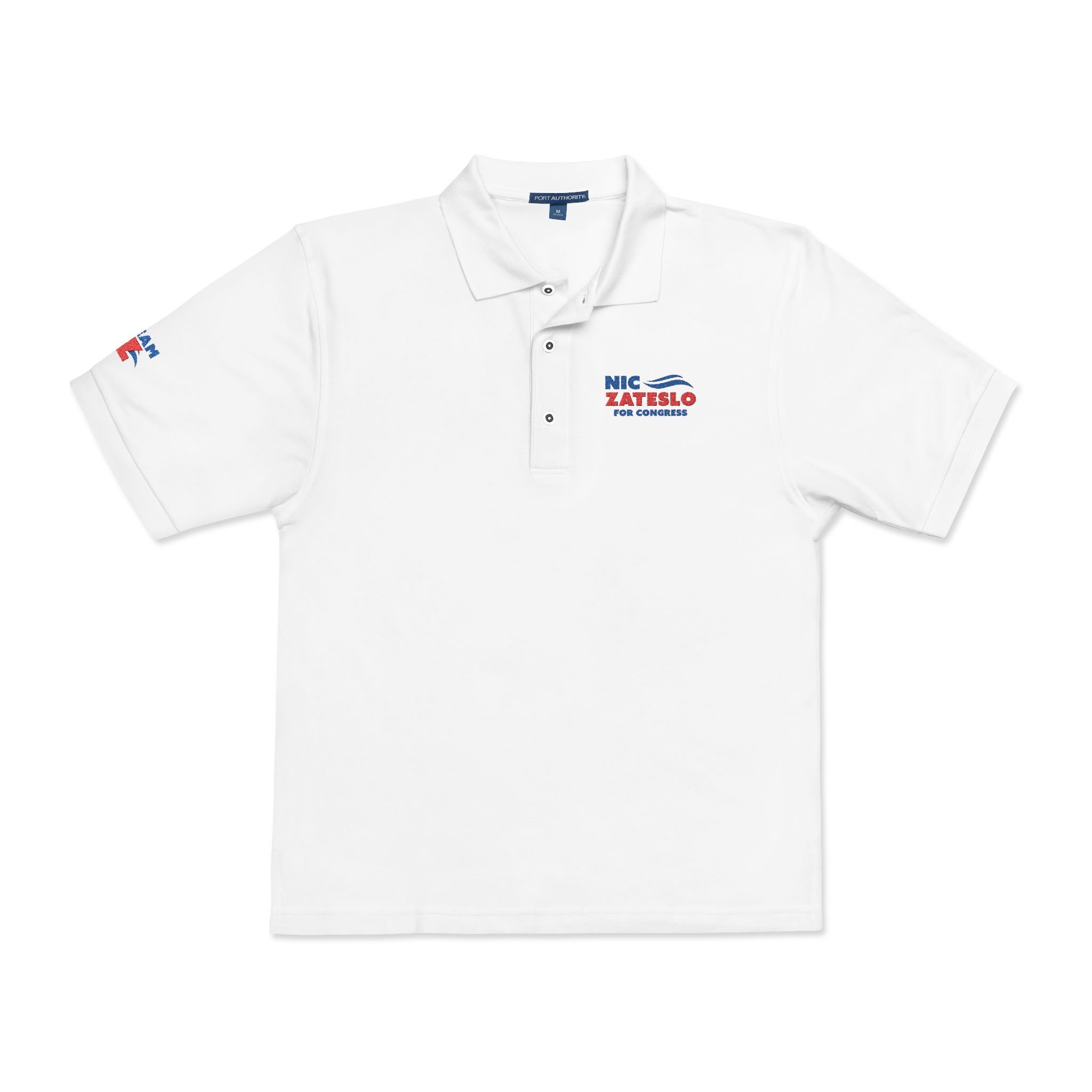 The design sits low-key on the chest, letting the embroidery speak through texture more than color. The flat-knit collar and cuffs hold their shape after many wears and washings. Side vents and breathable pique fabric keep air moving during long volunteer days. Metal buttons with dyed-to-match rims add a small, refined detail that reads intentional rather than flashy. Wear it to campaign events, meet-and-greets, or neighborhood walks—wherever steady presence matters most.